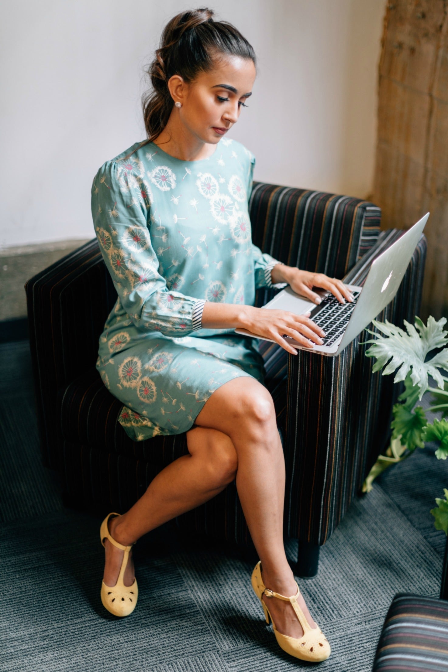 The Dancing Dandelion makes getting dressed a breeze! Its soft fabric slips on like a nightgown and the playful print gives just the right balance of polish and eye-catching personality.