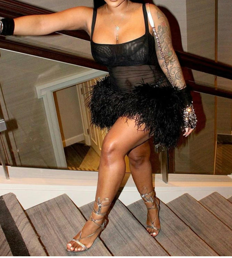 Women sexy feather 🪶 dress hood for birthday girl.Â