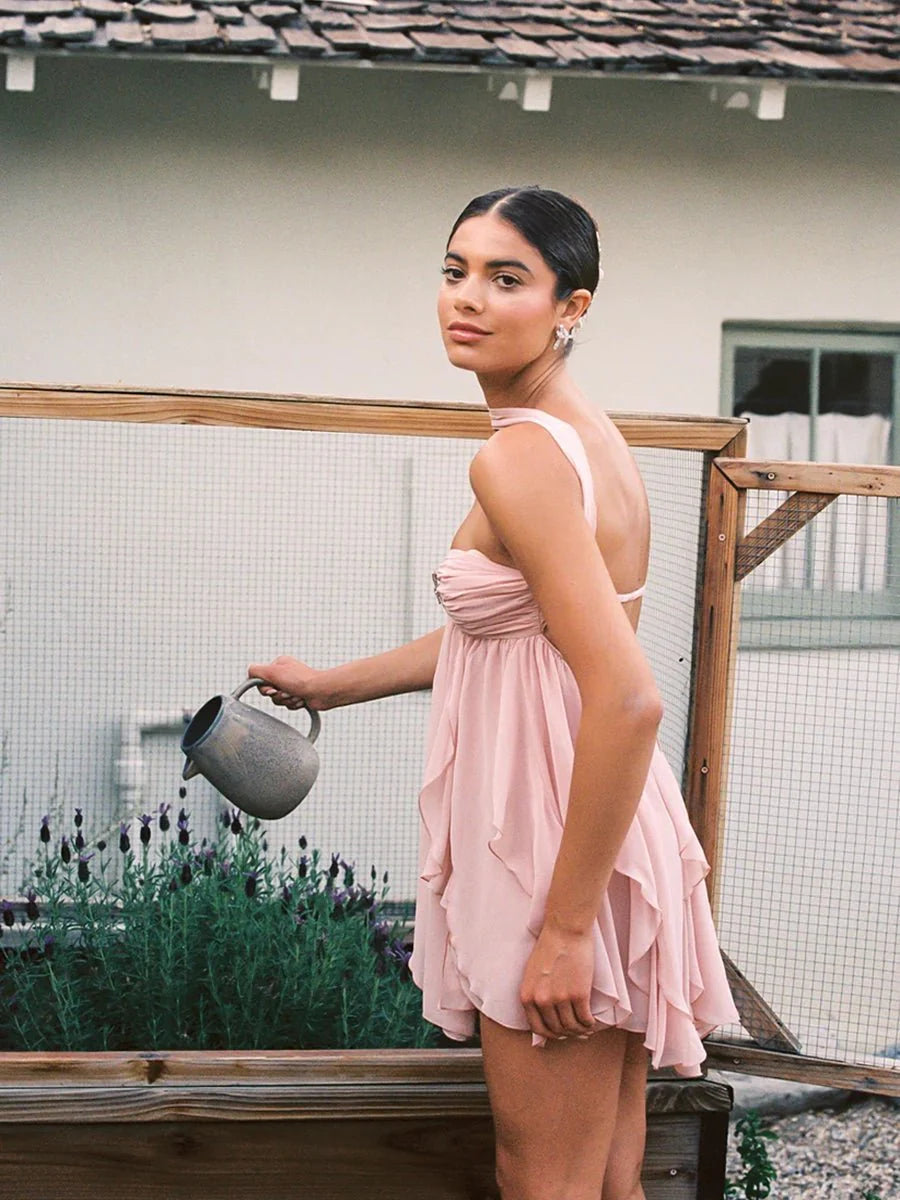 Step into summer with the Jocelyn Halter-Neck Backless Dress — a chic and refined piece that balances effortless style with bold detailing. This dress features an inverted halter neckline, a ruched bust adorned with a removable starfish brooch, and a double-layered hem with a slit for graceful movement. With a hidden back-closure for a seamless fit and a backless silhouette that turns heads, this dress is ideal for evening events, summer nights out, or any occasion when you want to make an elegant statement.