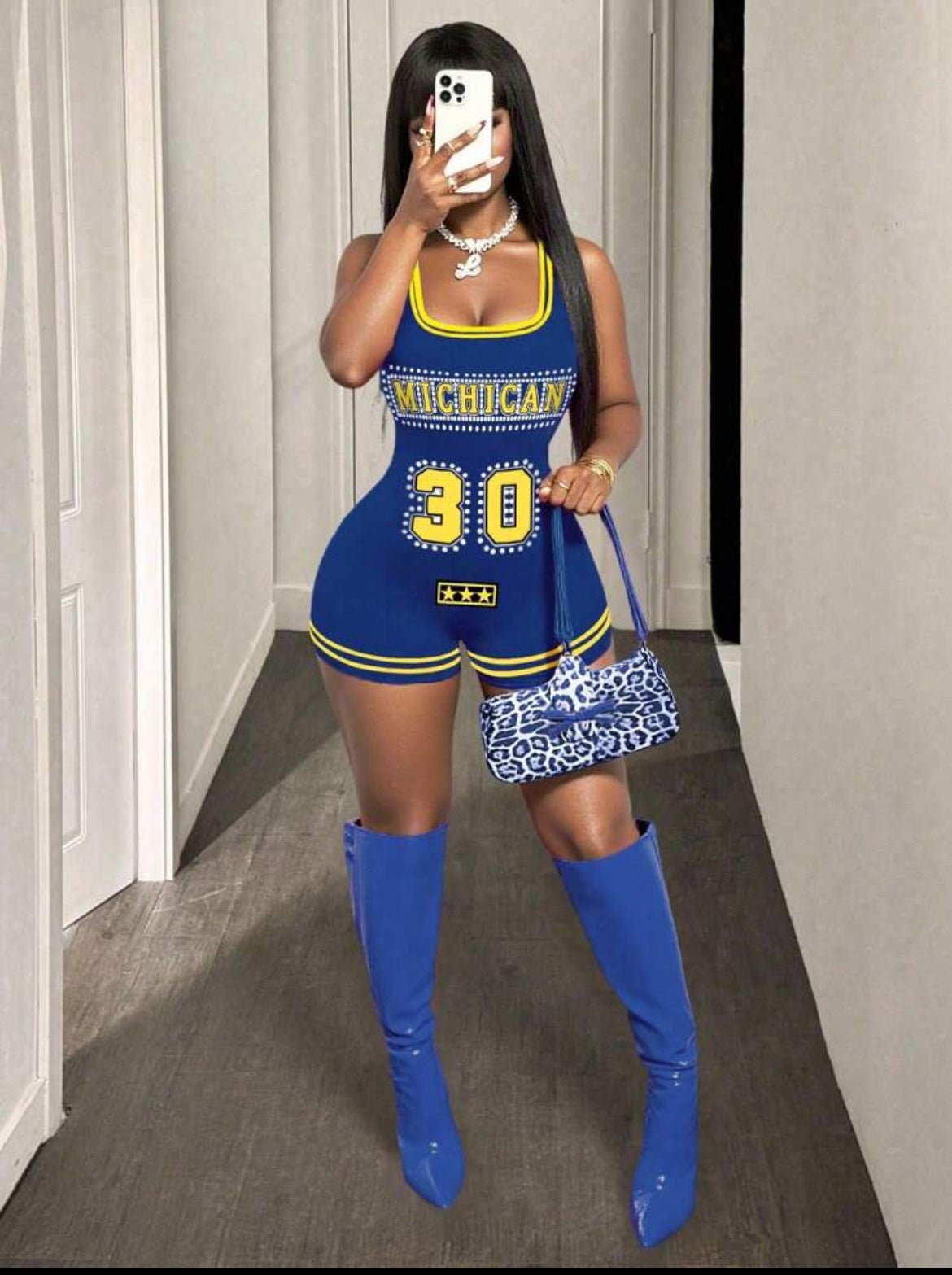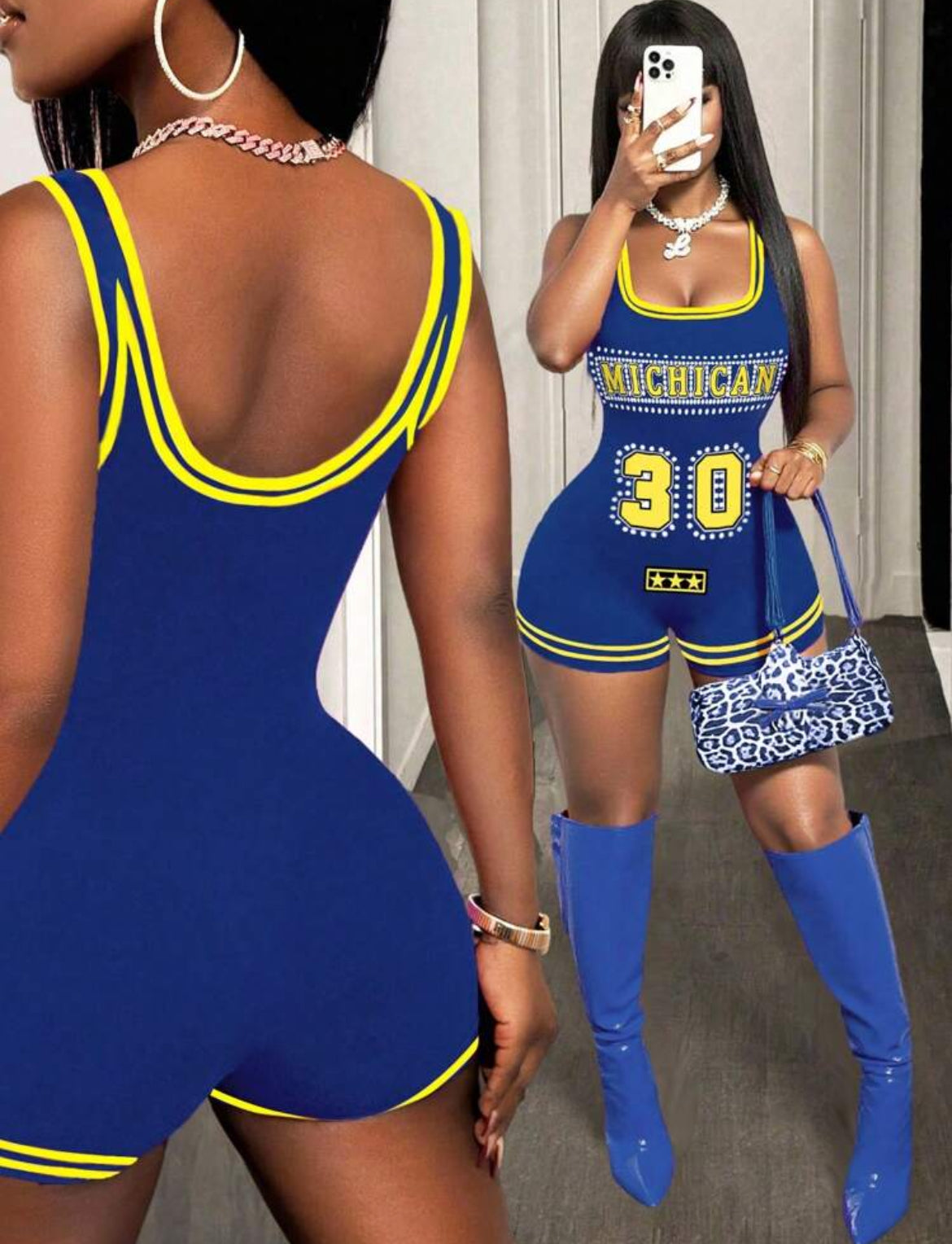 BamGleam Women Letter Print Striped Square Neck Casual Jumpsuit