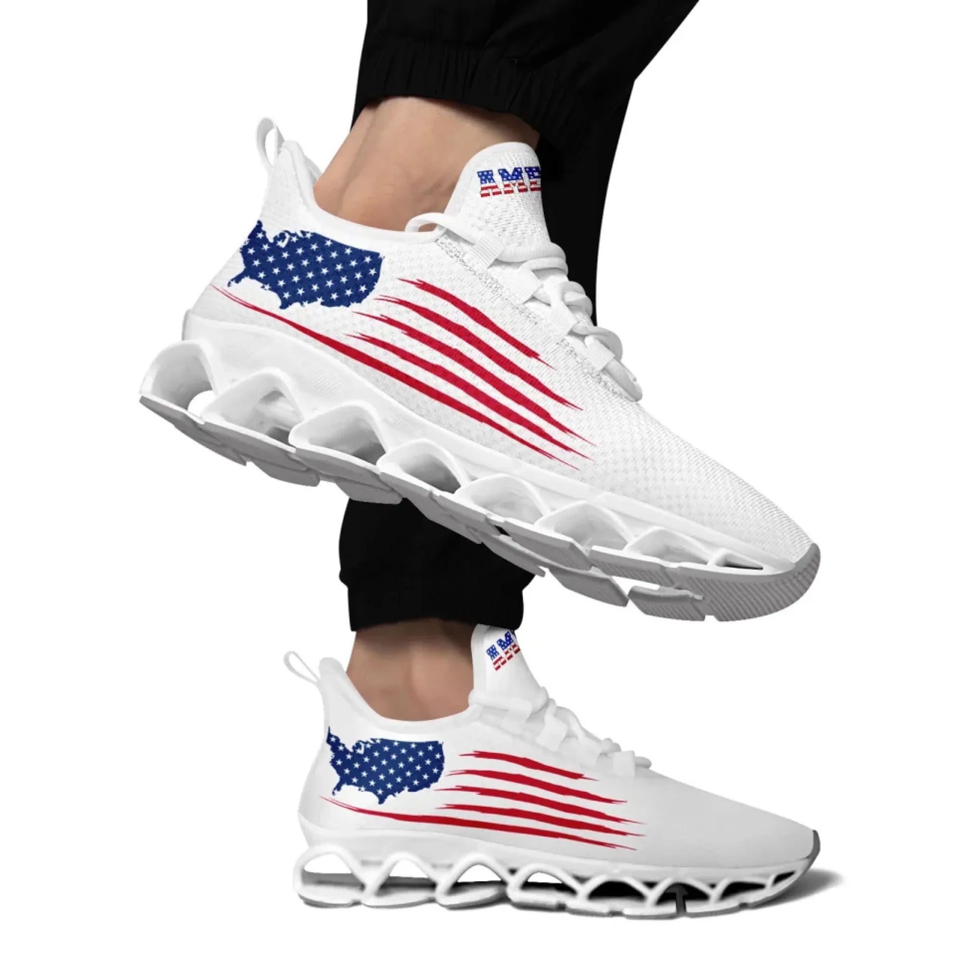 Show your American pride with every step in these custom-designed flag sneakers! Perfect for patriotic celebrations, casual wear, or showing your love for the USA, these breathable lace-up shoes combine comfort, style, and national spirit.