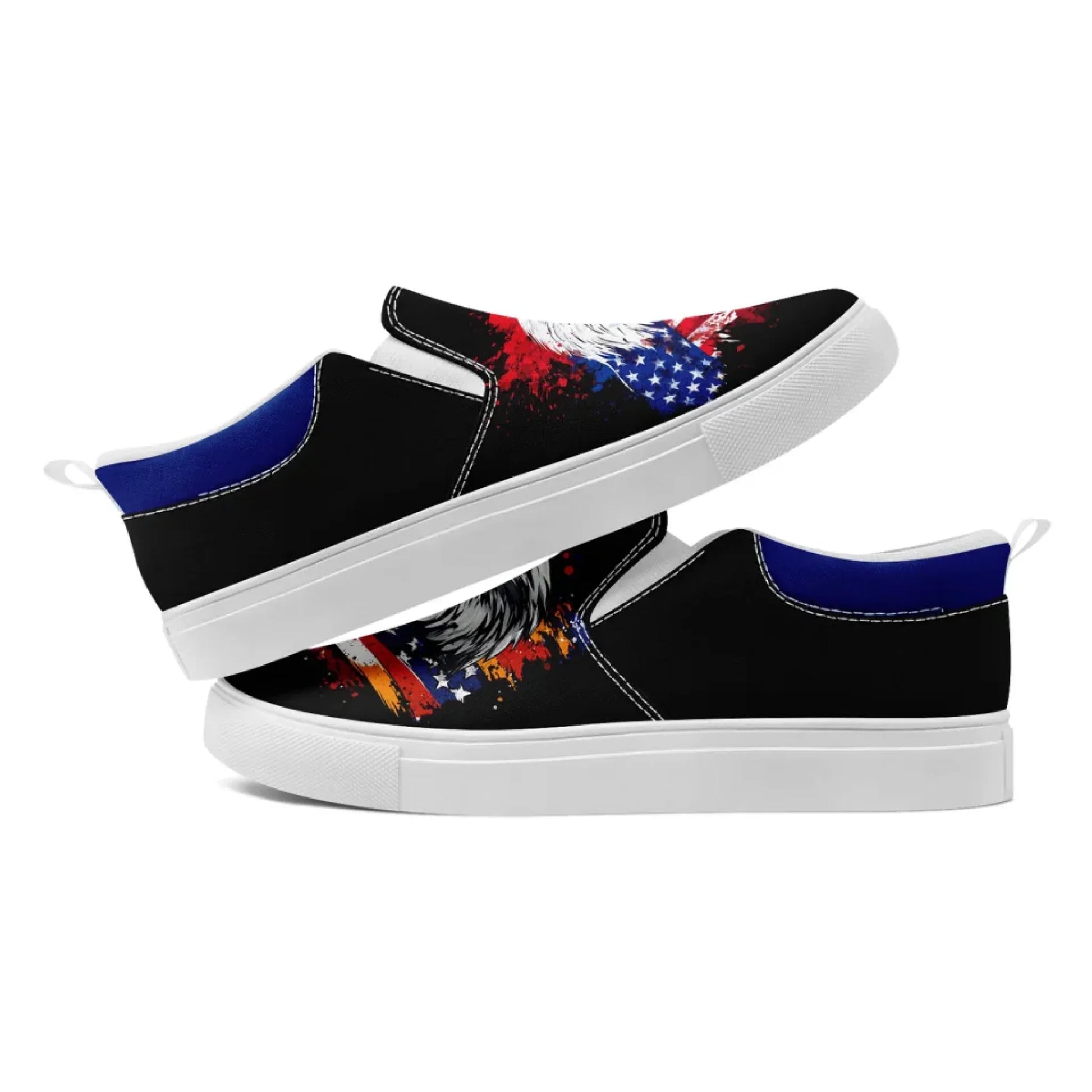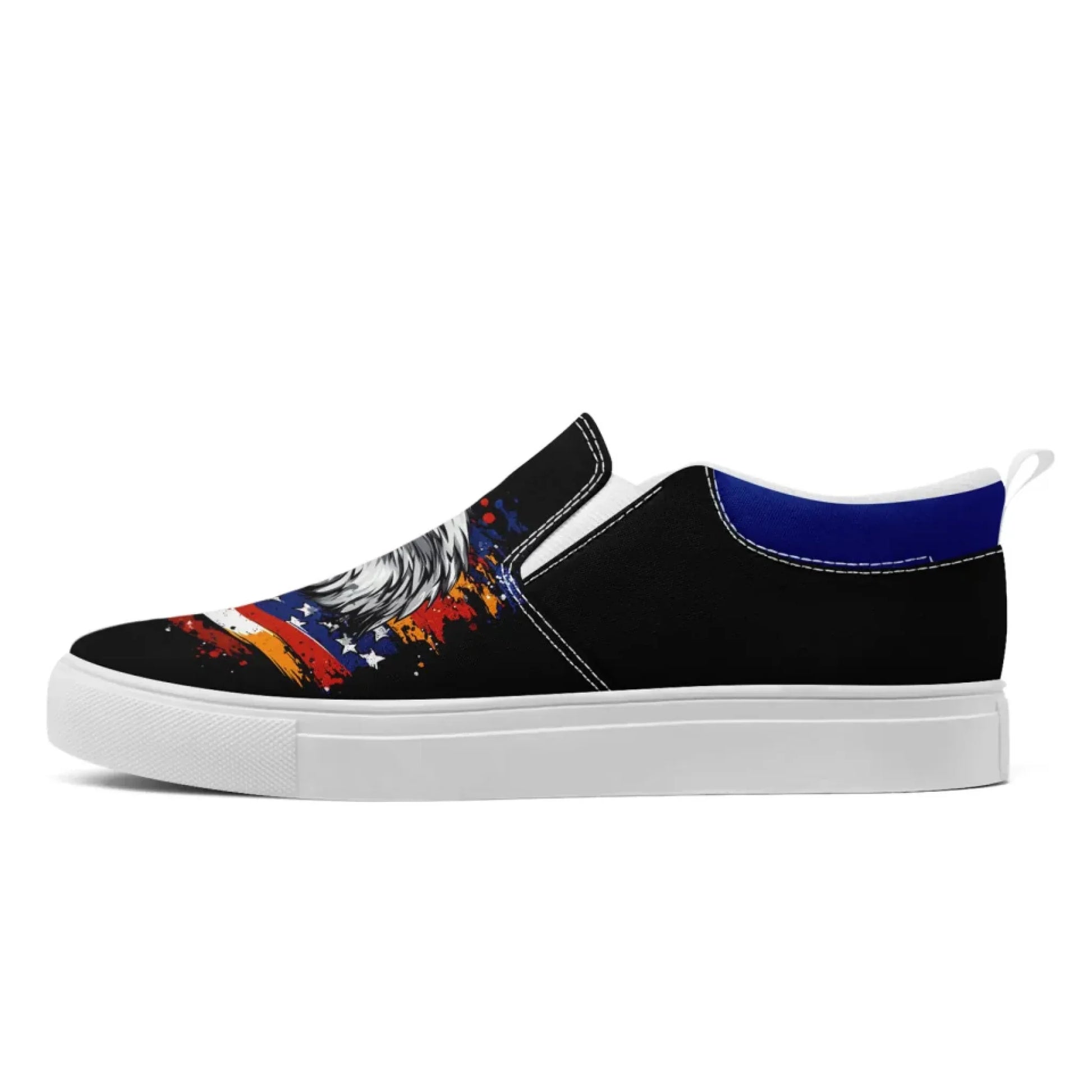 Step into pride and patriotism with our Personalized Patriotic Sneakers! These custom slip-on shoes are the perfect way to showcase your love for your country or your support for the LGBTQ+ community. Featuring vibrant US flag and Pride flag designs, these sneakers are designed to keep you comfortable and stylish while making a bold statement. Features: Customizable Designs: Personalize your sneakers with patriotic motifs like the US flag, Pride flag, or other symbols of pride and freedom to reflect your unique values. Vibrant & Stylish: Featuring bold, eye-catching designs that celebrate love, diversity, and national pride. Premium Comfort: Made with soft, breathable materials and cushioned insoles for all-day comfort, perfect for walking, standing, or dancing. Slip-On Convenience: Easy to wear and designed for hassle-free styling, making them perfect for on-the-go lifestyles. Durable Construction: Built to last with high-quality materials and sturdy soles, ensuring they keep up with your adventures. Unisex Fit: Designed to suit both men and women, these sneakers are versatile and inclusive for everyone. Why Choose Our Patriotic Sneakers? These sneakers are more than just footwear—they're a celebration of love, freedom, and individuality. Whether you're a proud patriot, a member of the LGBTQ+ community, or an ally, these sneakers are crafted to help you stand tall and proud. Order Yours Today! Step into pride and positivity with Personalized Patriotic Sneakers. Perfect for gifting or treating yourself, these sneakers combine style, comfort, and a powerful message of support. Walk with pride in every step!