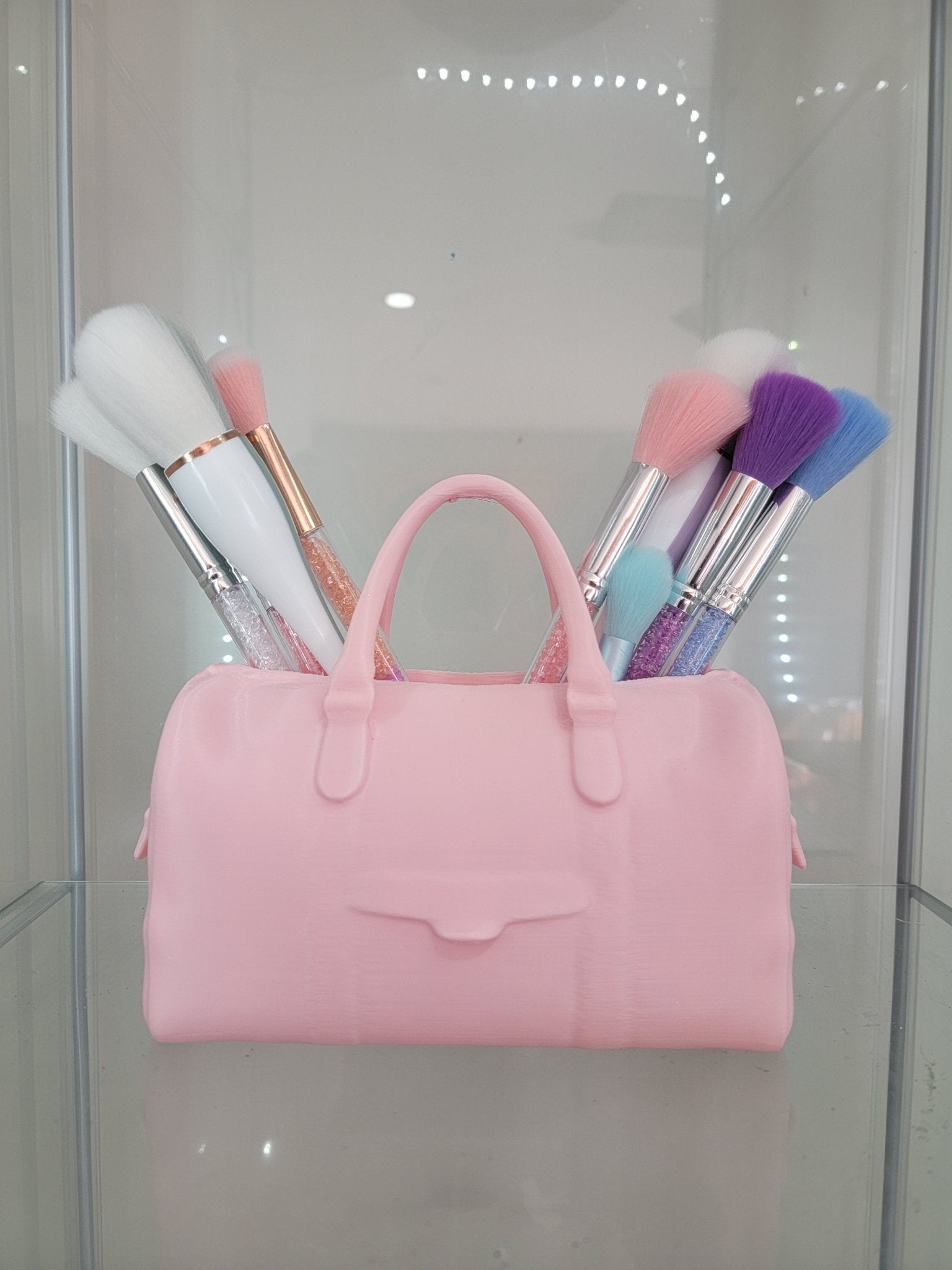 β¨ Organize your vanity in style with this 3D-printed pink duffel bag-shaped brush holder! Featuring a cute handbag design, this brush holder not only keeps your brushes neat but adds a chic vibe to your beauty space. Perfect for makeup lovers who appreciate fashion and function in one! π π