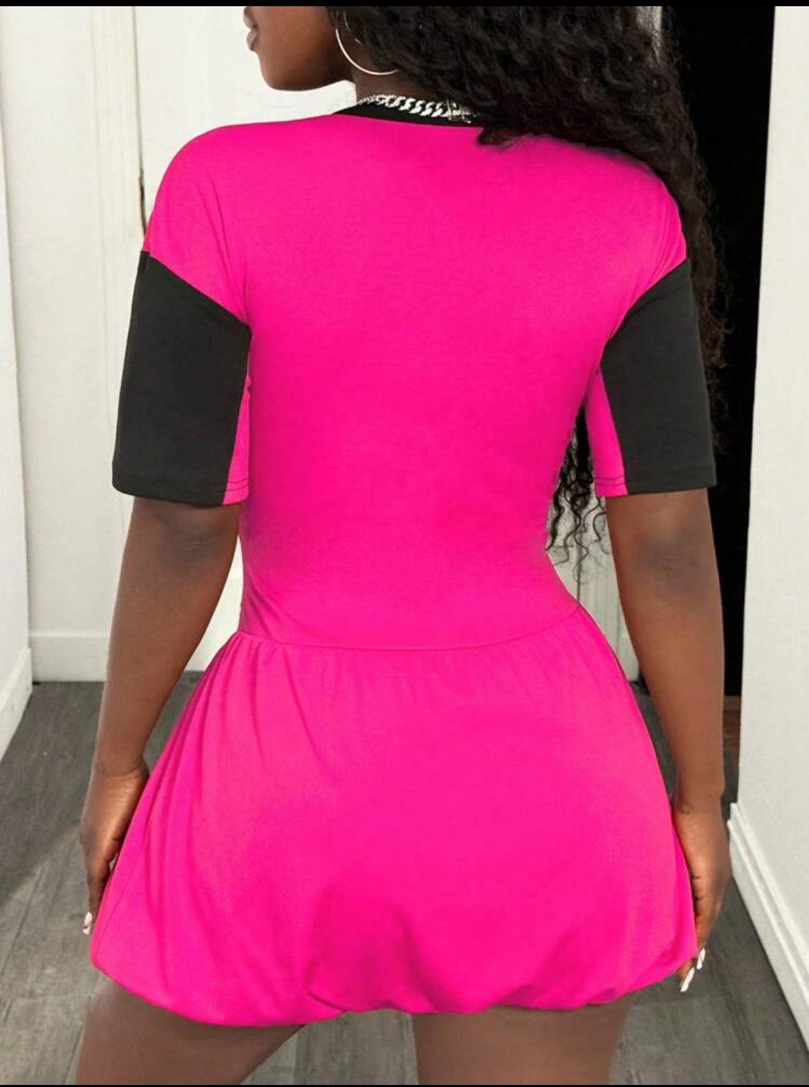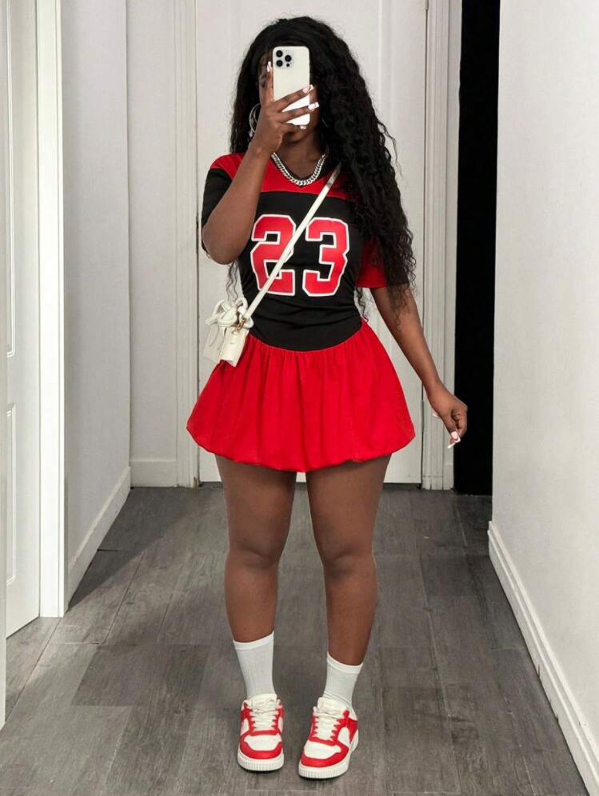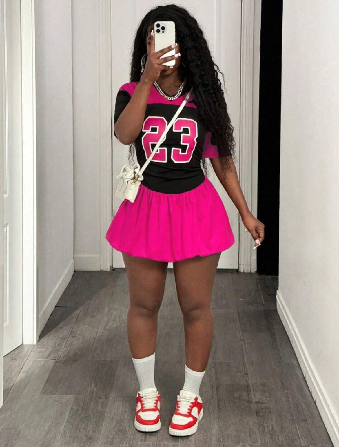 BamGleam Women's Contrast Color Number Print Flare Hem Mini Dress