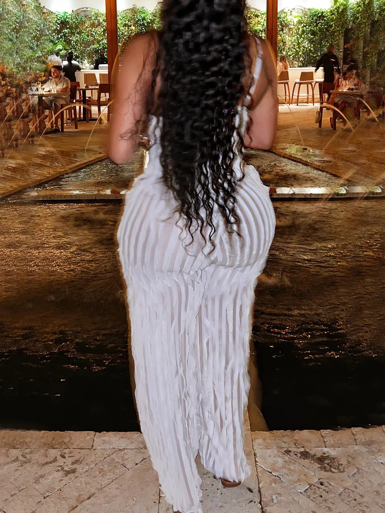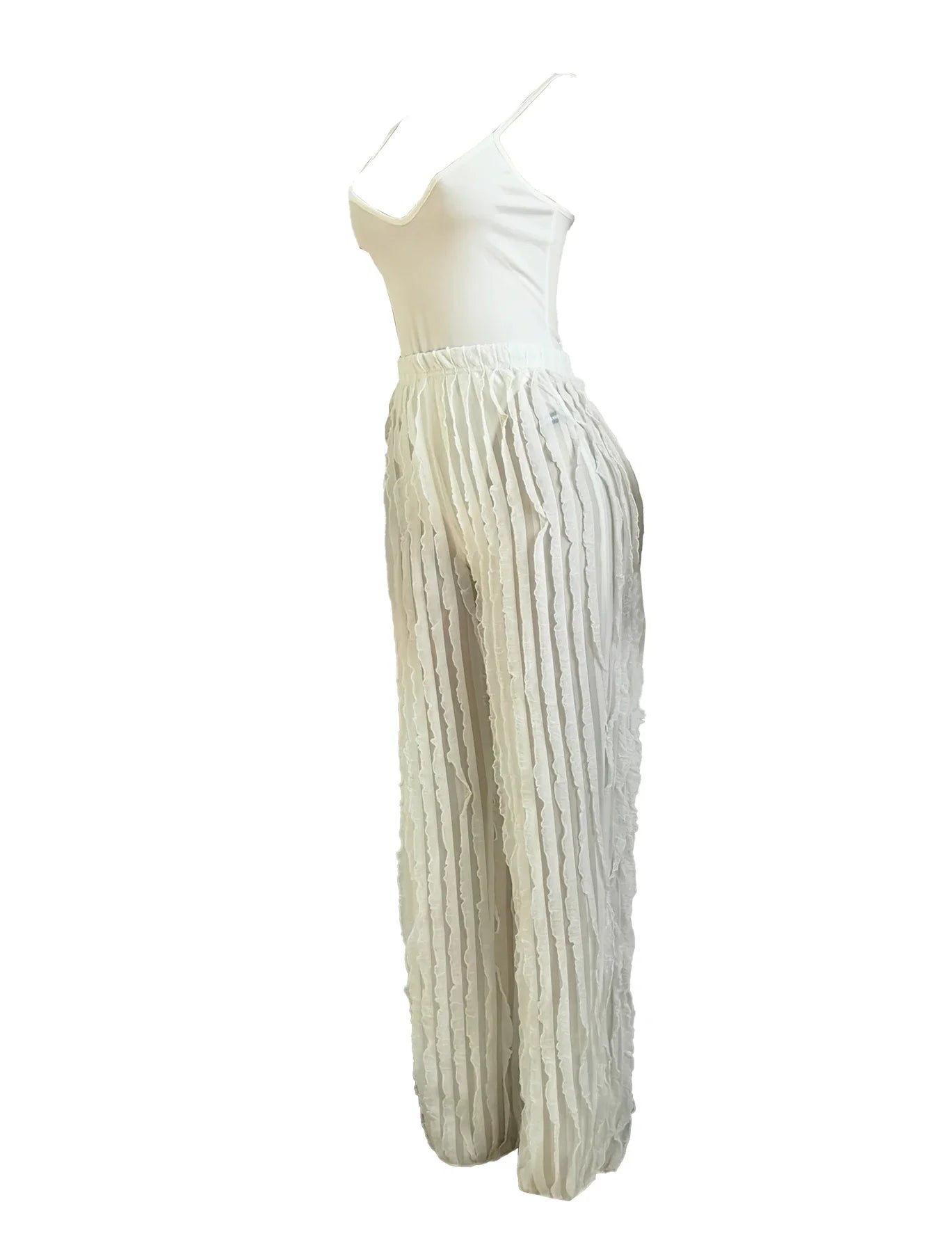 Women's Solid Backless Cami Bodysuit & Elastic Waist Frilled Pants Set, Fashion Casual V Neck Spaghetti Strap Bodysuit & Straigh